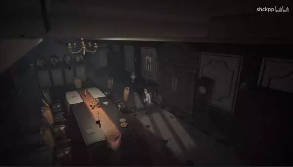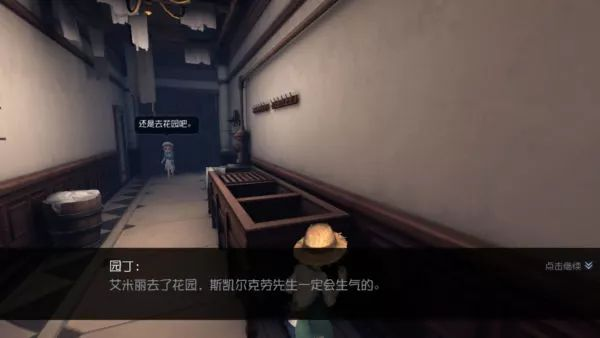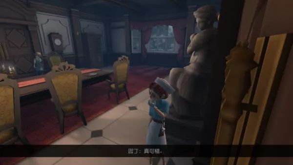5、慈善家当“柜皇”跑路了?关于律师日记的片段已经分析完了,下面开始慈善家视角的片段。 在第五个短片中,有一个人躲在柜子里(大概率是慈善家),看着律师和园丁经过,其实律师的神情十分凝重,园丁依旧是一脸想搞事情的模样,不停向柜子里面张望,但似乎并没有发现什么,于是紧跟着律师走掉了。