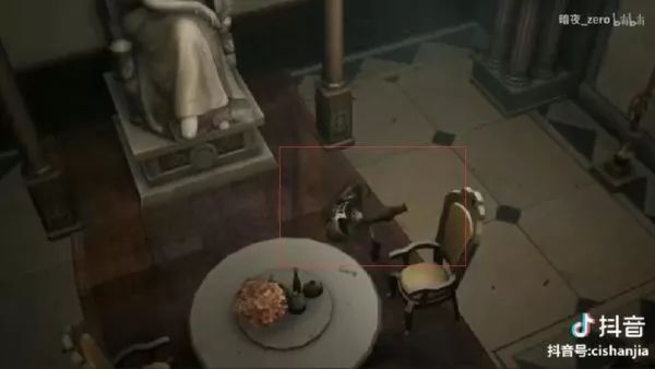 所以可以断定,这个柜子出现在一个新的场景中。 从律师凝重的神情中可以判断,他们或许正在前往狂欢游戏的路上,于是我们不难推断,这个画面对应的时间是7月13日,也就是狂欢游戏开始之前,慈善家失踪的那一刻。而慈善家之所以消失,竟是因为他事先躲进了柜子。 ——总感觉这个推论好扯啊,庄园主也太不小心了,进柜子竟然就可以躲过这样一场拿生命做赌注的游戏。 而且医生并没有出现在画面中,也使得这个推论并不严谨。 还有一点,大家不是都说后来慈善家和稻草人一起被园丁装进行李箱了吗,这显然与慈善家躲柜互相矛盾啊? 所以此条推论暂且存疑,或许还有更深的黑幕没有被我们挖掘出来。 六、究竟是谁害慈善家跌落,金币和刀究竟去了哪里?依旧是高能剧情,7月10日慈善家跌落事件也有新进展了。 从第六个短片中我们可以看出,慈善家是为了捡一枚放在断裂扶手下面的金币而跌落的,并且摔得非常重(估计如果没有“身体灵活”15% BUFF,恐怕真的就是脑袋先着地了)