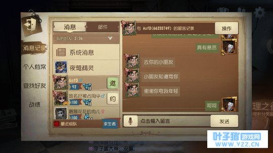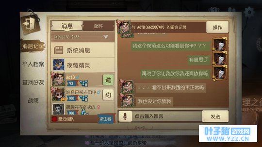 最近up在玩第五人格,今天不知道怎么了这么倒霉,突然冒出个云玩家。他玩的是前锋,其他人分别玩的是园丁,医生,空军,我玩的杰克,后来我三放一放了园丁。以下就是我和他的对话