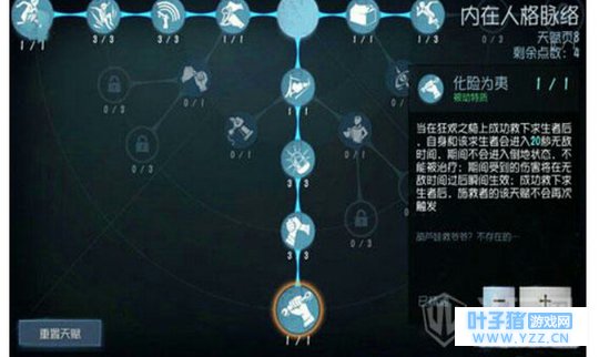 【化险为夷】: 成功救人后,自身和被救者可进入 20 秒无敌状态。由于空军自带信号枪,可以正面射中监管者,使其眩晕数秒,为逃生者争取行动时间。因此利用这一时间空挡,可以帮助解救队友。 【火中取栗】: 从处刑架上救人速度提升50%,这也是救人实用技能。 【巨力】:溜屠夫专用,靠板子巨力可以让屠夫眩晕时间更持久,然后就是跑!尤其是往板子多的地方跑,一旦监管者被板子砸中,那么晕的时间变久,自身更容易逃脱。也可以利用这个时间段,让队友解码。实用性非常高的天赋,值得大家加点。 以上4点加点天赋就是空军玛尔塔的加点攻略,希望对大家有帮助。 https://m.chinaz.com/tribe/2018/0404/870655.shtml 前锋第五人格前锋天赋加点推荐,第五人格前锋长处在于溜屠夫和冲刺能力,因此前锋天赋可以增强技能和生存能力,就算被屠夫抓住了也可以挣脱,下面带来第五人格前锋天赋加点推荐,前锋天赋怎么加点好,希望对大家有所帮助。 第五人格前锋天赋加点推荐 前锋也是类似于佣兵的生存型求生者,拥有游戏中最快的奔跑能力,无论是翻窗还是翻板子都是首屈一指的,不过在开密码方面就不是太在行了,所以这里推荐大家加的天赋点主要是增加翻窗和翻板子速度的,另外提升前锋的挣扎能力,就算是被抓住了,也能够尽快的逃脱,让监管者无可奈何。