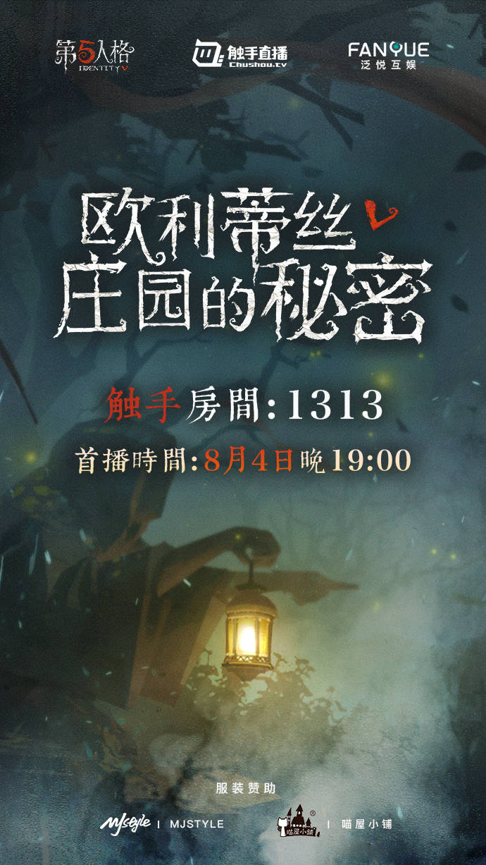 除了上述的一些线上线下等活动,有官方出品的真人秀大型活动《欧利蒂丝庄园的秘密》也将在今晚7:00正式开始,看《第五人格》真人秀能否给我们带来不一样的精彩体验,请在今晚锁定触手平台1313直播间。