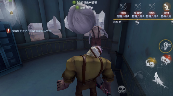 有一点比较恶心的就是跟着傀儡放狗,狗咬到了人,傀儡一刀,本人一刀,直接倒地。还有前后夹击,直接卡住倒地。傀儡就是漫无目的的游荡,来了躲柜子,不过特别扰乱节奏,你根本不知道来的是傀儡还是本体。欺负欺负小蜜蜂小猎犬还行,到了中段就很尴尬,带了张狂闪现还能六十秒开技能,不带张闪地形不行直线跑你都要追很久。娃娃睿智放块板子给他踩的时候拆了他,除非屠夫带传送保娃娃,不然就是拆了等CD,可带传送开技能又太慢。