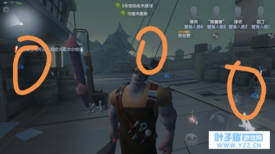比方说图中这几个圈的机子,还有船上这一台机子,这几台机子在遇到厂长时不要直接就开了,除非是速修流或者有队友能拉住屠夫,不然这几台机子对于低端局的玩法很重要。