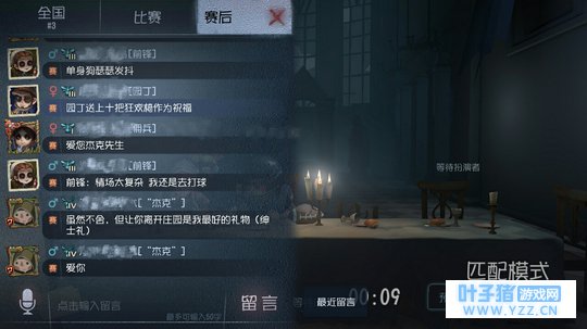 这是一个真实的故事呦! 休息室: 四只小朋友 看见了桌子上的玫瑰手杖 奈布:“哇哇哇!” 艾玛:“哇!” 艾玛:“绅士” 奈布:“是我老公嘛” 红教堂(哇!这个地图很赞) 游戏开局之后,杰克看着小朋友们开电机。 up作为作为一名园丁当然是拆椅子了quq,这么好的佛系怎么能不刷分!!! 此时,奈布受伤---奈布倒地---奈布被公主抱 然后大门打开了,队友迟迟未走。某园丁看着队友还在就继续拆了。 拆到没剩几个的时候突然就心动了(此时奈布掉下来了),当面拆椅被恐惧震慑,以为会得到公主抱的园丁嘤嘤嘤的爬了过去,结果被无视了。 然后前锋和小佣兵赶来拉起了我,然后小奈布跑到杰克面前求公主抱。 奈布受伤---奈布倒地---奈布被治疗 奈布:“快走!” 奈布倒地---奈布被公主抱 艾玛继续拆椅子…… 艾玛拆椅子中…… 躺在杰克怀里的奈布:“快走!” 前锋逃脱 园丁继续刷分开箱子…… 佣兵逃脱 园丁内心:“杰克会不会给艾玛公主抱呢?”(其实不用抱抱已经向门口跑了) 监管者投降 赛后(此处高甜,请做好吃狗粮准备) 奈布点赞杰克 杰克:“抱歉,我是奈布的老公。” 园丁:“果然只抱奈布quq” 奈布:“我超喜欢你的” 奈布:“尤其理发师” 奈布:“大爱” 园丁:“嘤嘤嘤” 杰克:“谢谢” 杰克:“让我遇见了你,小奈布” 杰克:“期望下次遇见是美好的” 前锋:“单身狗瑟瑟发抖” 园丁:“园丁送上十把狂欢椅作为祝福” 奈布:“爱您杰克先生” 杰克:“虽然舍不得,但让你离开庄园是我最好的礼物(绅士礼)” 杰克:“爱你” ______________________ 故事结束了,说实话:杰佣是up吃过最甜的糖quq,多么希望每一个杰克都会宠着小奈布啊!!! 请问还有没有小可爱碰见这样甜的杰佣,评论区留给你们quq,请给我发杰佣糖吧! 后面给图以证真实,来感受一下杰佣糖~名字打码,我怕你们会爱上这个杰克先生给人家添麻烦哈哈哈