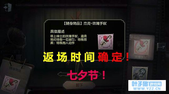 近期,官方透露,玫瑰手杖将要返场,时间与情人节有关,三书推测应该就是在七夕节了。很多当初没买的,后来才加入庄园的玩家已经攒好了钱跃跃欲试了。到那个时候会不会所有的杰克都会公主抱呢?