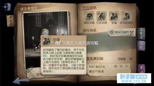 佣兵新“坚强”特质 坚强 (增强), 技能描述不做赘述,也就是说,佣兵所受的伤害都会延迟15秒生效(奈布:我的反射弧比较长)容易遭到误解的是,是否是 受伤后吃刀 即将倒地状态才能触发延迟伤害的效果,就像化险为夷搏命挣扎一样,答案是,不。 新佣兵受到的一切伤害都会延迟15秒,也就是说,他在健康状态下,最多可以吃三刀, 而不是搏命的无数刀。注意一点,延迟15秒伤害不等于15秒无敌。你就比普通人多一条命,可以多吃一刀,(吃完还是要倒)况且,佣兵这个特质优势在于,15秒是从你吃刀的那时候开始算起,而不是搏命的救下人后20秒开始算起。况且这个特质无法保护被救下的人。 所以这个特质和搏命有优有劣。