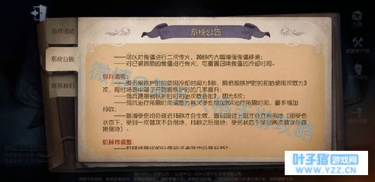 特蕾西的新面孔 机械师调整: 娃娃修机速度提升25%; 降低“机械专精”对队友的增益,由提升8%修机效率改为提升3%。 在我看来,这就是赤果果的削弱。 机械师之所以受欢迎,是因为殿堂级排位不可复选角色, 无法达到双空双慈这样的完美阵容,这个改革是是对求生者的削弱。那么选好了空军,慈善家,再补一个比较全能的魔术师(或调香师),最后一个选什么呢?答案是:机械师。因为可以总共为队友增加24%修机效率。机械师娃娃还可以挡刀开门双线修机,就很舒服。重点是其他人上椅子两个人在修,机械师上椅可以剩四个人都在修,又修的快,成为不二首选。 而现在,这个 团队buff被削弱了(现只提升9%),光凭娃娃的效率提升我觉得远不如强大的团队buff, 既然不能速修,机械师的出场率应该会因此降低,应该会有更多人尝试 牛仔,新佣兵,前锋 这样的 牵制角色。