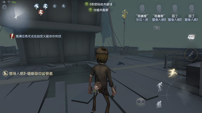 湖景村:船上甲板。 船上甲板必然有一台电机,这台电机跟圣心医院的原理差不多,监管者需要上楼梯,有足够的时间让你离开。一楼二楼来回走,可以拖延监管者时间,但是,船上基本没有板子,只有两只窗,一个不小心就会恐惧震慑。建议来回一回两回之后必须转点。