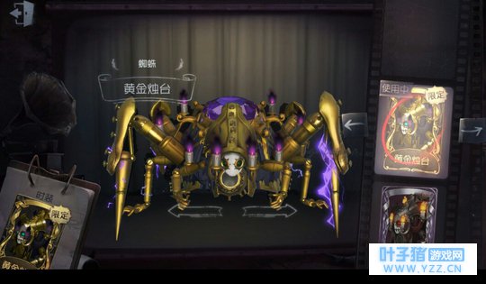 蜘蛛(黄金烛台) 蜘蛛可是咱第五的屠皇呐,速度那是一等一的快,技术好的话一条密码锁内求生者们就都飞天啦~黄金烛台的造型可是使蜘蛛的档次提高了许多呢!
