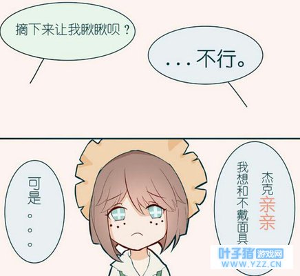 园丁本想摘下杰克的面具却被阻止了,园丁可怜兮兮的对杰克说要和不带面具的杰克亲亲。