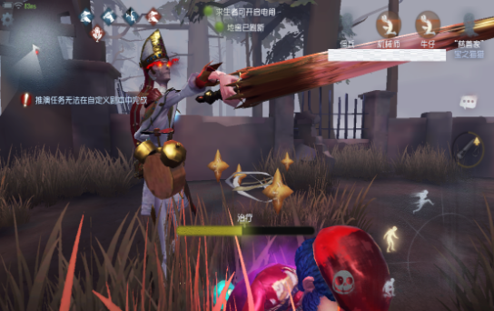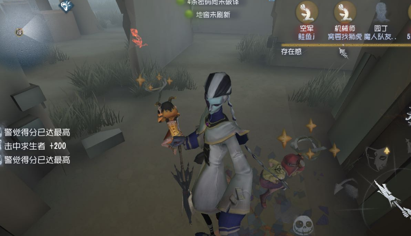小白刀气长的离谱,也很容易抽板后面的人。因此小白的刀小编经常用蓄力斩,虽然硬直长但是手感特别好,距离拉长了就一个技能加速追上去,1阶技能就小黑守尸,看到有人来就一个摇铃接上一刀,然后等他救下来人正好擦刀完毕一刀送他回椅子,再去追半血的人,运气好他还没救下人就方向变了,白送一个人头。