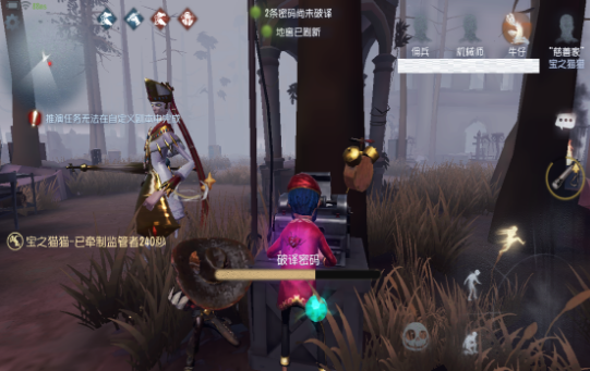小编个人觉得小白手感比小黑好。小白磨刀速度和砸板恢复速率,还有小黑被砸的声音简直让人发指,所以说小白容易被溜,但是要是提前出刀也可以打到。由于小白移速相比小黑较快,个人推荐前期抓人疯狂游走,打到一刀如果进板区就技能传送走,往机子晃得最厉害的地方移动抓修机主力,顺便说一下这里带的是失常。反正追人不上头,打到一刀就是好的。