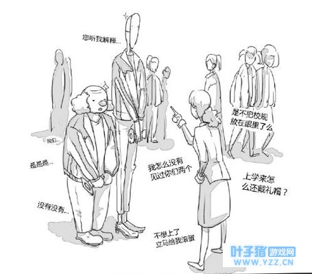 就被一位很是严肃正义感责任感爆棚的优秀人民教师给拦住了。。。你们两者着装很不合格知道吗?这是学生应该穿的衣服吗??话说那个高个你那个是面具吗?搞cosplay吗?