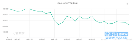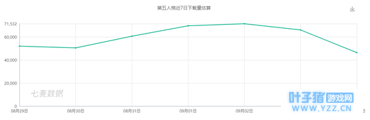 百度指数 接下来我们再比较一下下载量,根据七麦网给出的数据,仅在IOS端,第五人格的近30天的日均下载量在5-6万次左右,而刺激战场近30天的日均下载量则达到40万次。