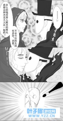 虽然不知道面具下的容颜,但是已然无悔。。。不论今后的生活多么苦,多么累。会遭受别人怎样的眼光,我都会坚定的,不会动摇的和杰克大人一起。。。说着,奈布在杰克冰冷的面具上落下深情的一吻。。。啪,,奇迹的是,一吻落下,面具崩碎?