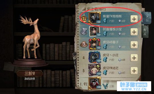 第五人格排位赛大家关注了没,本周排位赛国服排行榜,是不是感觉没什么变动,第一名永远都是同样一个ID名字!他就是熊猫TV主播抱抱熊君。