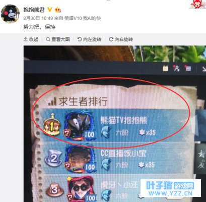 抱抱熊君应该算是熊猫第五人格版块的一哥了,这次排位赛,果然不负众望成为第一,真是给熊猫TV长脸啊。抱抱熊君,已经雄霸NO1的位置超过一星期了! 但是,今天抱抱熊君不知咋的,居然一局游戏都没赢,真是不科学!更惊奇的是,一局游戏都没赢的抱抱熊君,居然还能霸占国服排行榜第一名的位置,居然还没有被拉下来!