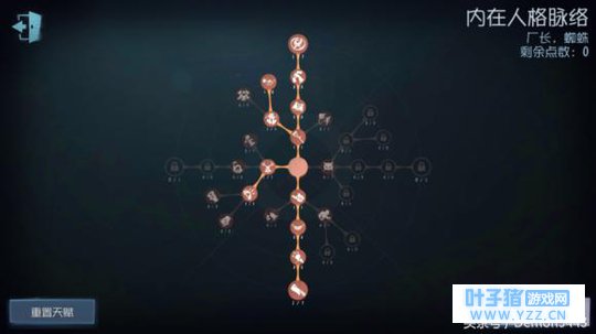 蜘蛛 推荐技能: 闪现、金身、传送。 解析: 蜘蛛这个角色我还是比较常见的,刀距一般但是移速很快,吐丝的命中率比较低不推荐各位使用,容易浪费蛛丝。 注意: 蜘蛛不需要张狂所以没有占有欲提示,可以提前在一些重要路口布置蛛丝,如果出生在靠近大门的出生点可以选择在大门拉丝,被人提前踩了也没啥事,还可以移速加成,搬尸的话可以选择墙角,提高人家的救人难度。蜘蛛网可以布在拐弯处,拐弯加速,吐丝一阶不推荐使用,二阶大网还行在那人翻窗或者过板前预判,有利于打出两刀。