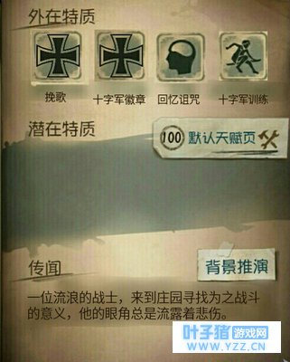 一位流浪的战士,来到庄园寻找为之战斗的意义。他的眼角总是流露着悲伤…