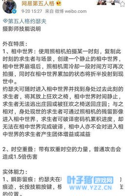 尽管官方已经公布了约瑟夫,并且已经上线了共研服,但是约瑟夫的技能可以说是相当复杂,也就是说发动技能后会形成一个相片中的世界。拍到求生者的话,求生者就会进入相片中的世界,不能离开庄园,技能的话相对来说更加复杂。