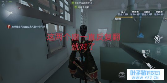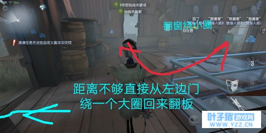 值得注意的是,离窗比较斤的那个门,容易被小丑套路,有些小丑会在你跑向窗时,进行冲刺,而这时候他不是冲向里面的,而是冲向外面的,等你翻出来他正好打到你。所以在窗子边一段距离的地方等一下,如果小丑的火箭尖过了门,立刻跑步一个快翻窗,就能接着玩,反应一定要快,否则就是恐惧震慑。