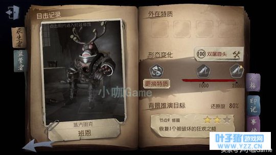为什么现在鹿头不想做大的修改,策划也是说过了主要就是鹿头算是第五人格当中的“元老”级别,对于最初的设定策划们还是都是非常的满意,所以说鹿头大改是不太可能了,而做小小的调整还是没有什么问题的了,所以在十一之后这位同样是兄贵体型的鹿头才能摆脱下水道的困扰哦!
