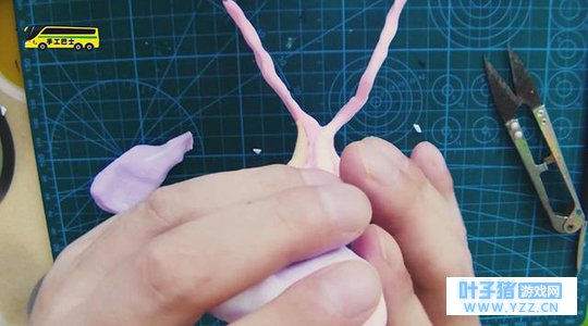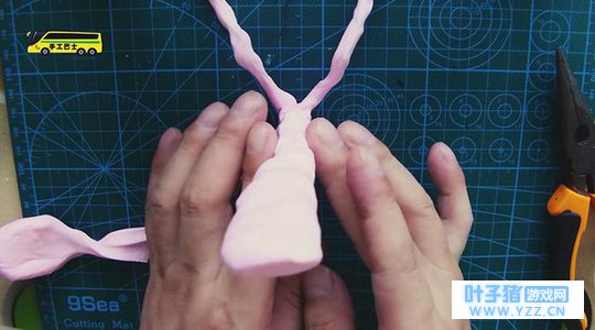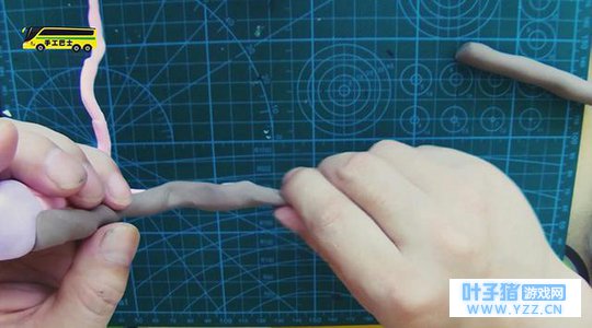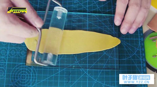 6、 黄色的轻黏土擀片晾干,小猪要给它做衣服。