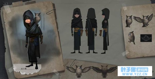其实从造型的眼睛面具都能猜出来一点技能,下面是占卜师的官方技能介绍: 役鸟:占卜师随身携带役鸟,开场役鸟巡视全场,依次标记队友,役鸟返回后占卜师可用役鸟追踪味道,飞向指定角色并获得役鸟的观察视野,期间可驱使役鸟守护目标一段时间,为之抵挡伤害;役鸟与监管者对峙时会积累怒气,使它获得额外的行动次数。 先知:占卜师可预见未来,每次看到监管者都将持续获得一定时间内监管者的位置信息。 天眼:占卜师可明辨物象,开场即可获得一定时间内监管者的位置信息。 劳神:占卜师每驱使役鸟抵挡一次伤害均会感到疲劳,使自身板窗交互速度下降,此效果可叠加。