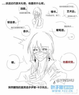 已授权 1.前篇 摸鱼儿超快乐。 p1是大家在讨论约老婆如果出专属送人上椅子动作是什么样的,就摸了摸女王拖。 大概拽后衣领吧。想了想也只有奈布画着合适x (杰克:记仇。) p23是万圣节小故事相关。让卡尔换了个耳饰x(其实也是岩哥想看卡尔戴十字架耳饰我才摸的,垂下来大概和下巴齐平!第二张耳饰画的大了一点…。) 没了。