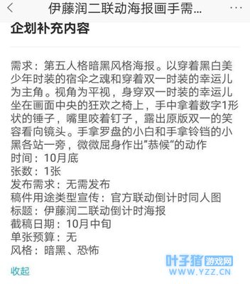 其实这个联动早在9月就初现端倪,9月份的时候,《第五人格》官方就发布了一个伊藤润二相关的海报征,其中部分要求是要画个穿着“双一”时装的幸运儿看向镜头露出诡异的笑容。