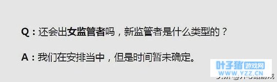 这不,在例行的问答环节,官方挑了一些问题在回答,当然就有新的监管者正在制作安排之中,老头建筑师已经曝光了, 而且很快就要上线了, 技能是造墙,改变地形!这些小伙们都已经知道了,但是这个女监管则是小伙们比较关心的问题,时间未定,正在安排,类型也是确定的,但是官方没有否认,那么可以确定就是了哟,还是满怀期待一下吧!