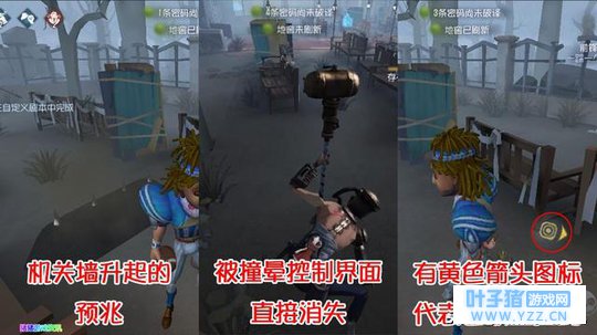 被削弱后,现在的疯眼更容易对付,每当玩求生者的那一刻起,当头上出现有箭头机器的图标,就知道了我已被监控到了。而且机关墙在升起的时候,还是有时间差的,经验丰富的玩家能轻松躲避,根本受伤不了多少血。在一个老头还有个致命弱点,最怕操控机器的时候被前锋撞一下,直接控制不了,画面消失。