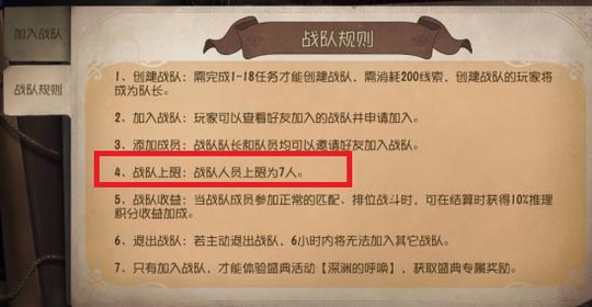 所以不能加入离自己水平差距太大的战队,因为队长是有资格把队员移出去的,在队员上限控制下,如果想要在深渊取得最大的战果,正常安排是2个负责玩屠夫,剩下5个负责求生者 不过考虑到监管者的权重较大,两倍优势,用三个监管者来角逐,找出用最好的屠夫来带,也是非常不错的选择。 当然能够有熟悉的队友自然是最好的了,不然大佬们都带不动,那就太凄凉了。