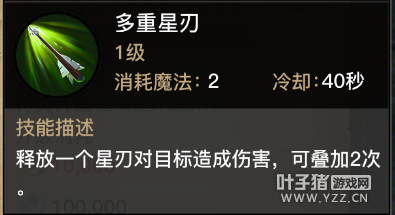 多重星刃:转职专属技能多重星刃,可以对单一目标多次造成伤害,可叠加2次
