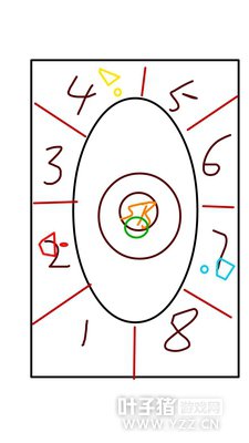 如图所示,boss房分为8个区域,由队长分别指定一名玩家负责一个区域。(另两人游走)