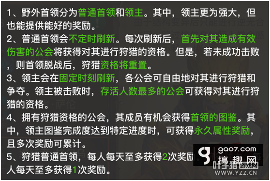 上图可以简单概括为两点:1、boos归属:打boss第一下的人的所属公会,团队中的该公会成员有机会获得首领图鉴。2、奖励:每人每天可以获得2次普通首领的奖励和1次领主的奖励。