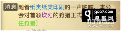 狩猎状态在狩猎过程中也会有系统提示,狩猎是限时的,如果输出不够,boss会脱离满血