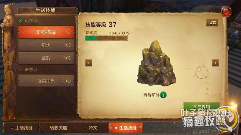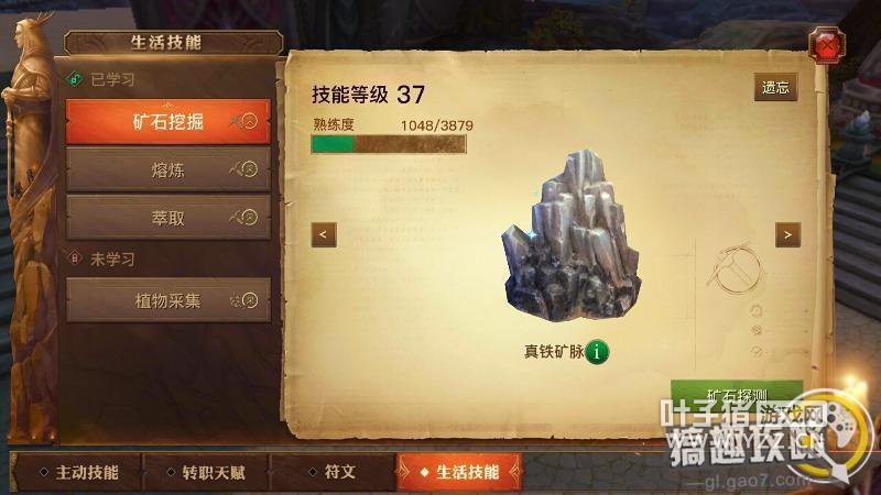挖矿熟练——小:3 中:5 大:7 获得经验——小:9 中:15 大:30 制造熟练——锭:12 钉:22 片:45 挖矿获得的熟练度和制作比起来真是小巫见大巫了,一般来说制造获得熟练度是翻倍增长的,这一点从我统计出来的数据上就可以看到,会精打细算的友友可能就会自己去计算哪一种方式比较划算了。这里需要强调一点,生活技能的等级和人物等级是有关系的,意思就是生活技能的等级不能超过角色等级,这也是很多友友制作或者挖矿不获得熟练度的原因,这一点一定要记住了,一旦生活技能的等级和人物等级相同了,就别再制作或者挖矿了,如果你的精力还是满的,要么你就升级角色等级,要么你就去开宝箱或者说去采集采集矿就行了,不要制作浪费材料! 附上青铜矿(大)的位置图 [attach]12539541[/attach] 三.真铁矿