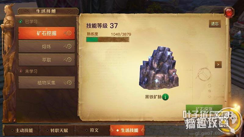 挖矿熟练——小:2 中:3 大:4 获得经验——小:6 中:9 大:21 制造熟练——锭:8 钉:15 片:30 黑铁矿是最初级的矿脉,在第一个地图采集,要想采集技能高那就得不浪费一分一毫的精力,精力是采集必须的东西,人物上限是200点。每隔4分钟恢复一点,一天恢复的上限是300点。很多友友一开始都认为生活技能升级太慢了,挖矿一次才几点熟练度,其实我想说的是~挖矿只是小虾米,制作才是获得熟练度的一个大方向。 附上黑铁矿(大)的位置图