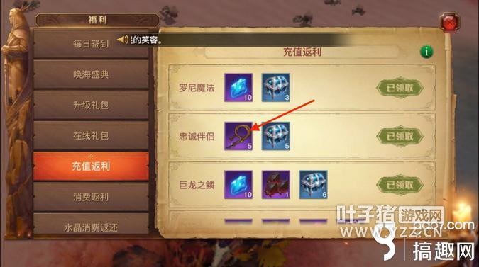 充值福利 良心游戏必不可少的返利 累计充值达到120元软妹币 可在充值返利界面领取五个逐风者的缰绳