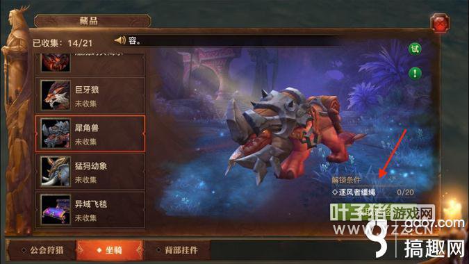 兑换介绍 这款道具用于驯服心仪的坐骑 勇士们收藏到一定数量可以打开藏品界面进行兑换 目前可以兑换的坐骑有以下五大只 犀角兽,猛犸幼象,金甲战马,银翼战虎