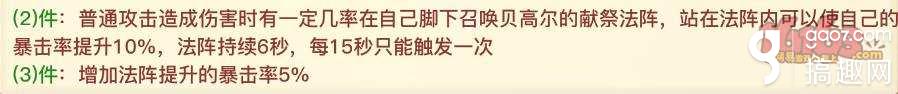 这件装备其实真的很好啊,虽然不加血量,不加任何面板。但是奶牧羊人归根结底不就是辅助么。你想想,一个又会加血又可以加暴击的牧羊人是不是很受欢迎,运气好的话是完全可以让自己团队的输出更上一个档次的。 自然恩赐套装: