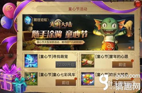 童心节五大活动袭来 欢乐无限6月1日至14日,《光明大陆》六一童心节活动重磅来袭,五大节日主题活动带你找寻童年最纯真的记忆,在游戏中重温充满奇思妙想的童年体验。活动期间,大家可【寻找萌宠】并完成它的心愿,以获得萌宠赠送的可爱小礼物;完成【童年心愿清单】,获得童年心愿礼盒;还能通过副本和活动手机碎片,组合属于自己的【童心七彩风车】节日限量藏品;也能在副本和活动中收集幸运许愿签,前往【欢乐大转盘】抽奖,风车部件、超萌坐骑恶魔小兔叽、幸运的四叶草、珍贵的两心项链等豪华礼品正等着你;最后,还能和小伙伴们【互赠童心礼物】,传递彼此的真心祝福,一起过一个充满童趣的节日!