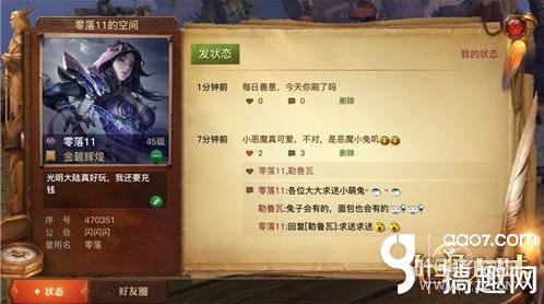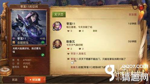 社交升级 好友空间即将开启 今天上线的1.8新版本中,好友空间将在部分服务器率先开启尝鲜体验,引领风语印记的深度社交玩法。好友空间会全方位展示勇士们的个人信息,除了头像、姓名、职业、等级、称谓外,还有个性签名书写出自己最独特的一面。空间的状态栏,可自由发表状态或查看好友发送过的历史状态,更能与好友互相点赞、评论、回复,分享不同的游戏心情,加深彼此的了解。此外,好友度、好友印象、好友分组等功能,也将从下周开始持续更新。随着风语系统的不断完善,将全面满足勇士们在《光明大陆》的社交需求!
