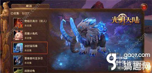 糖果除了可以在帕啾处换取甜蜜蜜全家桶外,还能兑换全新坐骑冰封猛犸象图鉴。冰封猛犸象有深灰色的皮肤与毛发,冲天的巨大象牙彷如千年玄冰,泛出湛蓝的光辉,灰与蓝、明与暗的强烈对比,让威武霸气的猛犸又带上了奇幻的色彩,想游历玛瑟兰德大陆的奇妙风光,表现自己的狂拽酷炫,冰封猛犸象将是你最佳选择!