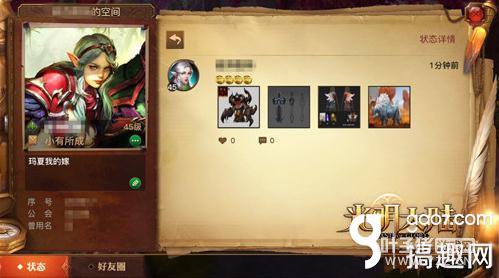 好友空间周五重磅开启 周五风语系统核心的好友空间玩法将在全服开启。好友空间将可以会全方位展示勇士们的个人信息,个性签名最能表达自己个性的一面,而头像、姓名、职业、等级、称谓等信息也将全方位展示。勇士们还可以在自己的空间里发表状态,记录游戏感受和心情。而通过好友圈,还能关注并回复好友状态,为他们点赞。如果你在游戏中遇到了趣味相投的人,进入彼此的空间进行深度了解,也能让你们更快熟悉。