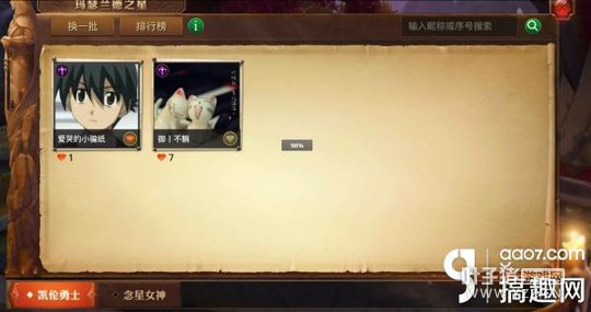 玛瑟兰德之星评选 点开可以看到报名人员,可以根据昵称和ID搜索关注以及未来开放的投票。投票的鲜花来源于幸运抽奖吧。