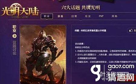 光明大陆玩家议会: 将邀请玩家作为主角,大家一起来讨论商定未来如何改进,项目组将仔细倾听大家的意见和建议,将勇士们的想法融入光明大陆的未来。 玩家议会议题内容: “职业、装备、日常、社交、PVP、其他”六大核心议题将面向所有勇士开放,诚挚邀请所有热爱玛瑟兰德的勇士们一起讨论,不论是脑洞大玩法,还是死磕小细节,一起决定这片大陆的光明未来。 《光明大陆》未来会继续朝养成轻量化、自由化、交互化、休闲化四个主要方向发展,在推出大玩法的同时,也会持续打磨细节优化体验。