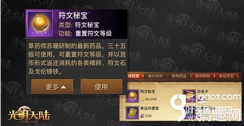 符文秘宝重磅来袭 好友度全新开启 而备受期待的“符文秘宝”本周也将来袭,今日维护吼,草药师苏珊最新研制成果“符文秘宝”将全服外放,符文秘宝35级可用,使用后将所有符文等级重置为一级,并返还所有消耗材料。材料将以代币形式返还,只能用于子符文升级,并在升级时优先消耗此类材料。