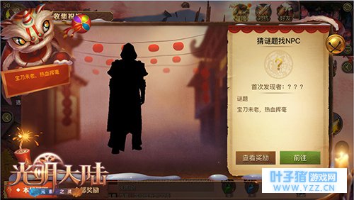 【解谜拜访NPC,连续8天送古神精魄】2月8日至2月15日,每天刷新谜题,点击活动前往按钮可自动前往谜底NPC附近,根据谜题找到NPC完成任务。